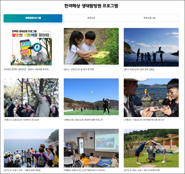 - 주요 특징: 숙박 연계형 생태 교육 프로그램 제공