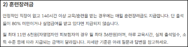 - 140시간 이상 교육과정 참여 시: 월 최대 116,000원 훈련장려금 지급