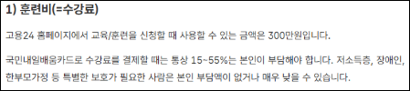 - 일반 참여자: 훈련비의 15~55%를 본인이 부담, 정부는 45~85% 지원