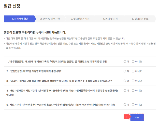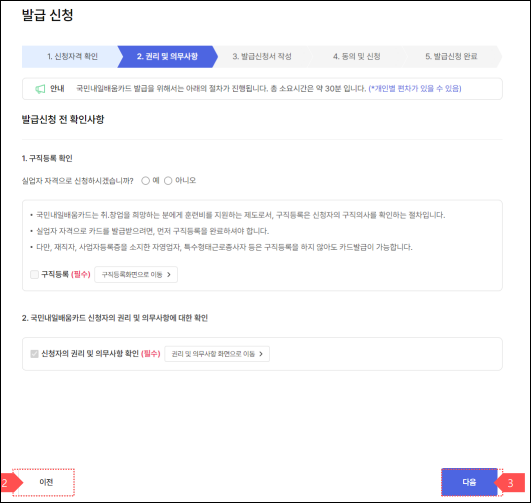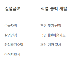 | 국민내일배움카드 발급 신청 | 직업훈련 및 자기계발을 위한 내일배움카드 발급 신청, 훈련비 지원 및 구직활동 촉진 |