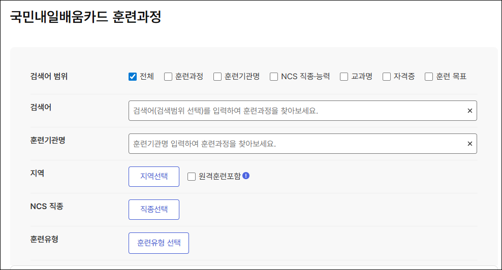 - 훈련유형: 집체훈련, 원격훈련, 혼합훈련