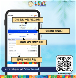 필리핀 방문 때마다 매번 새로운 이트래블 등록과 QR코드 발급이 필요합니다.