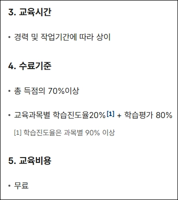 - 온라인 교육 가능하며, 공인된 교육기관을 통해 이수해야 함
