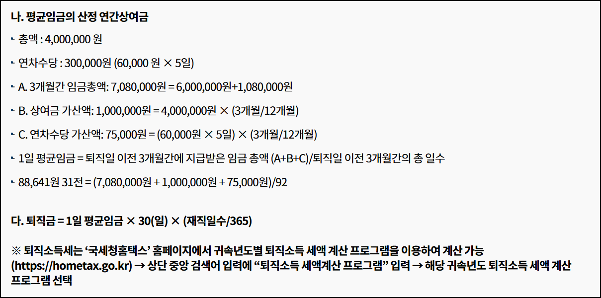 상세 계산법은 고용노동부 계산기 예시를 참조하세요.