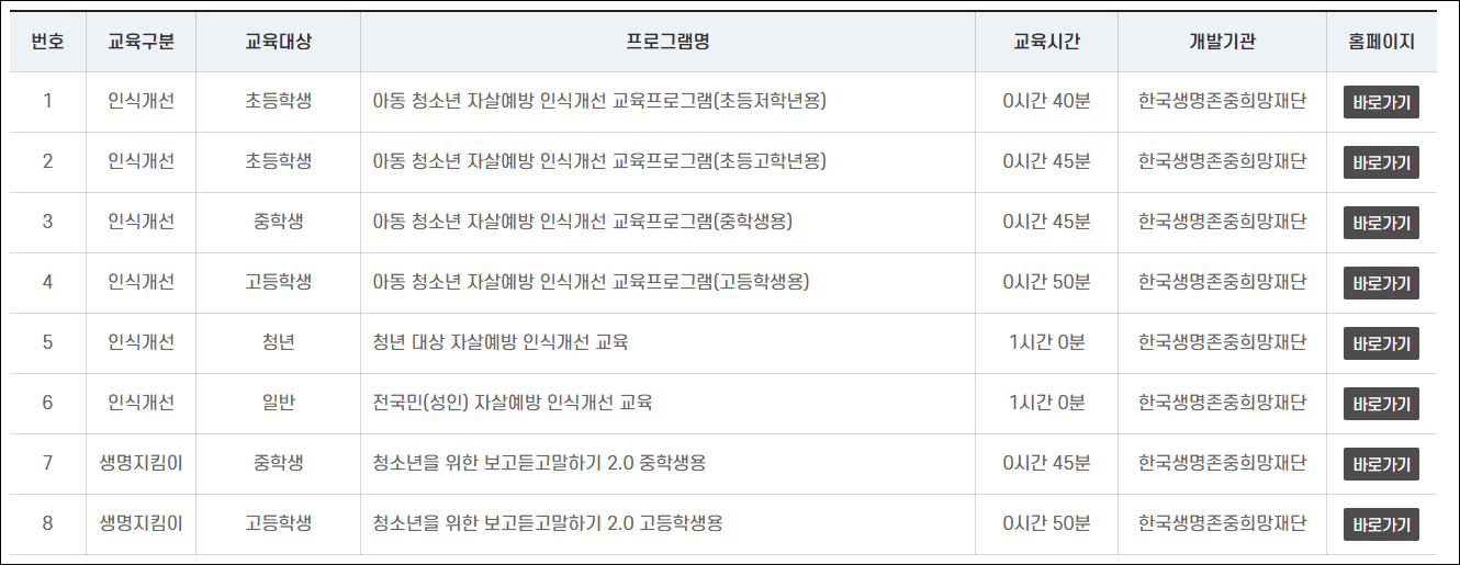 한국생명존중희망재단 자살예방교육센터 바로가기