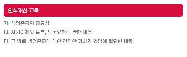 • 생명존중 문화 확산을 위한 연간 교육 일정 운영