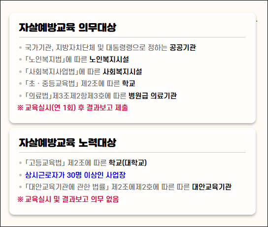 • 온라인 자살예방교육과 오프라인 교육 병행 추진