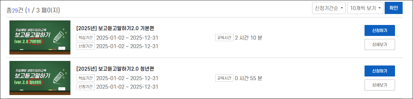 ‘보고듣고말하기 2.0 청년편’과 같이 세부 과정명을 확인한 후 해당 교육을 신청합니다.