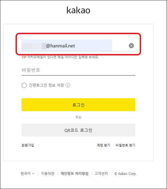 현재는 Daum ID 단독 로그인은 불가하며, 카카오 계정 연동을 통해서만 로그인 가능합니다.