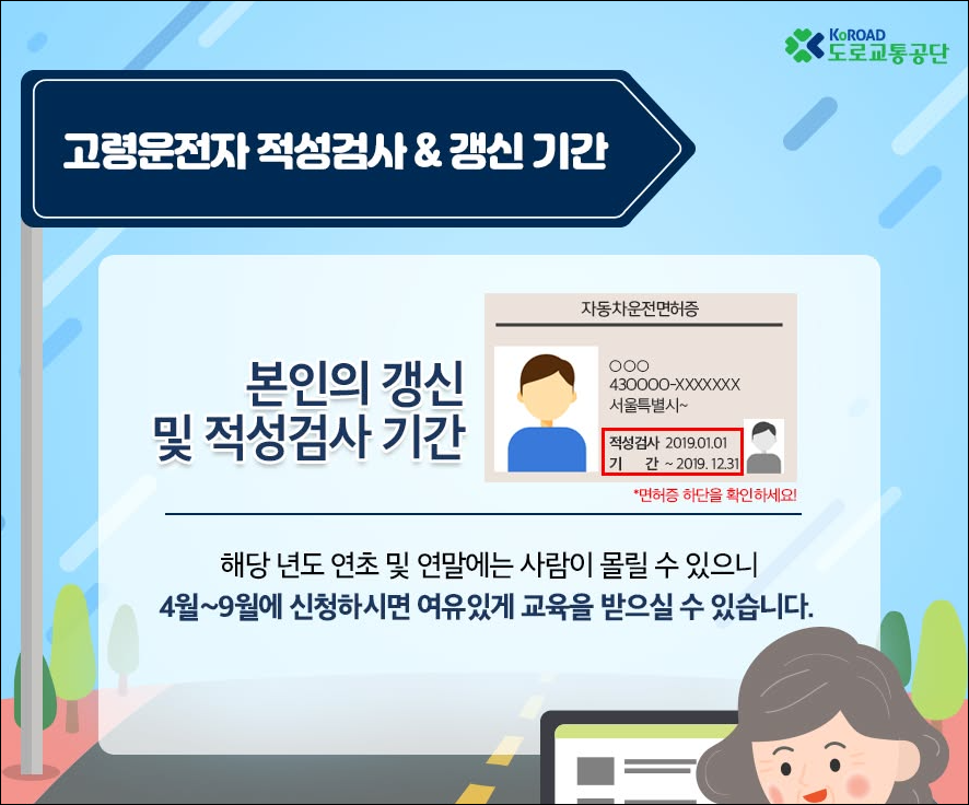 만 75세 이상 운전자의 경우, 면허 갱신이 제한될 수 있으므로 반드시 이수하셔야 합니다.