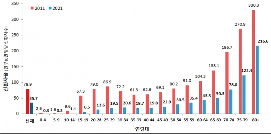 | 인구 10만명당 발생률 | 35.2명 | 38.3명 | -8.1% |