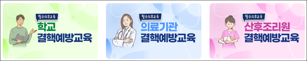 | 교육 대상 | 어린이집, 유치원, 학교, 의료기관, 산후조리원, 사회복지시설 등 집단시설 종사자 및 일반 대중 |