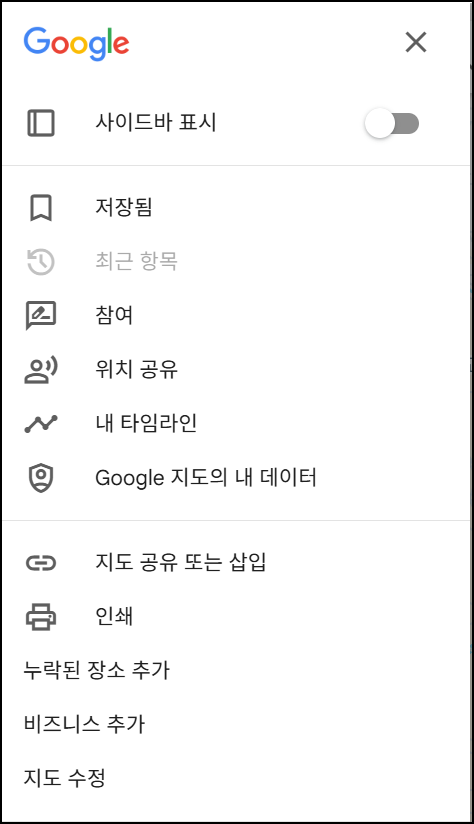 | 항목 | 구글지도 한글판 | 네이버지도 |