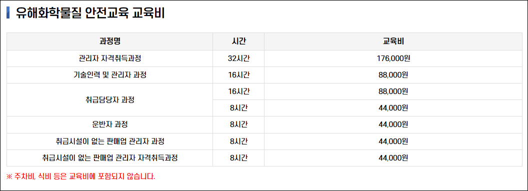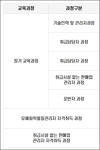 | 관리자 | 유해화학물질관리자 선임자 | 16시간/2년 |