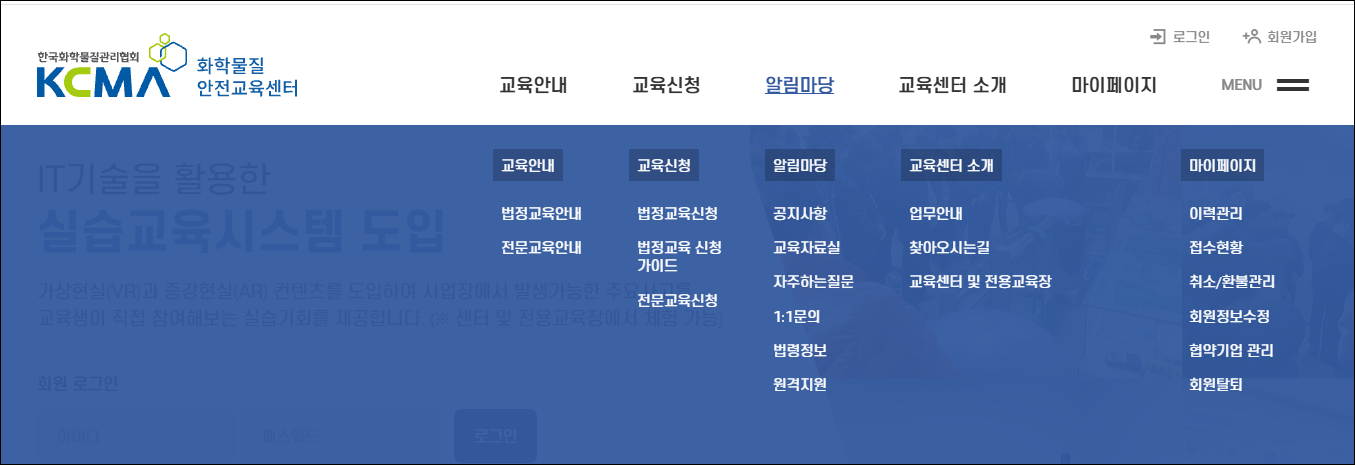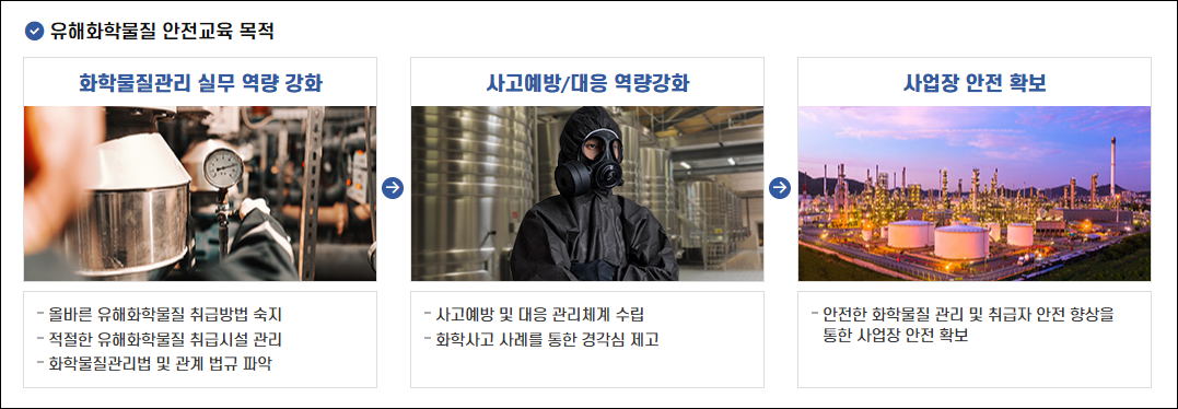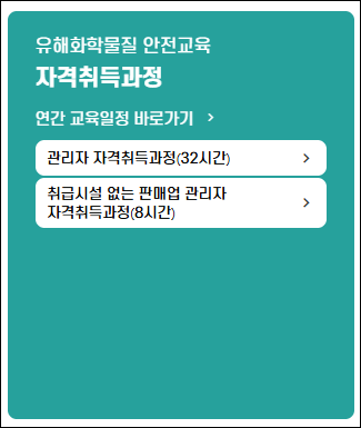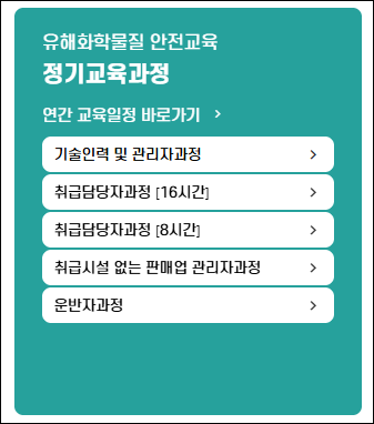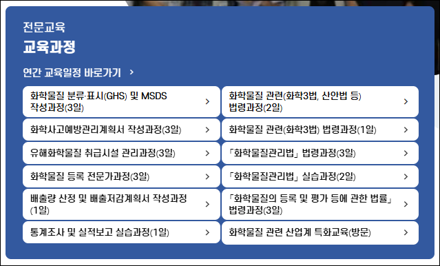 - ‘유해화학물질 종사자 교육’ 과정 중 해당 직무에 맞는 과정을 선택합니다.