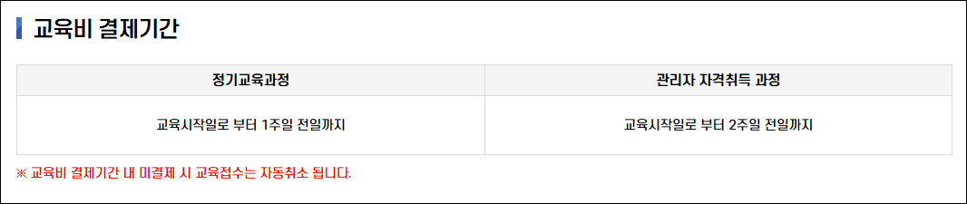 - 신규교육인지 정기교육인지 구분하여 신청합니다. - 3단계: 교육 신청 및 수강료 납부