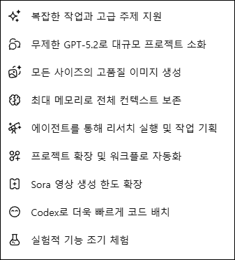 - 고급 모델(예: 고성능 o1 계열, 전체 기능이 해제된 GPT-5.2 등)의 연속 사용이 필요한 경우