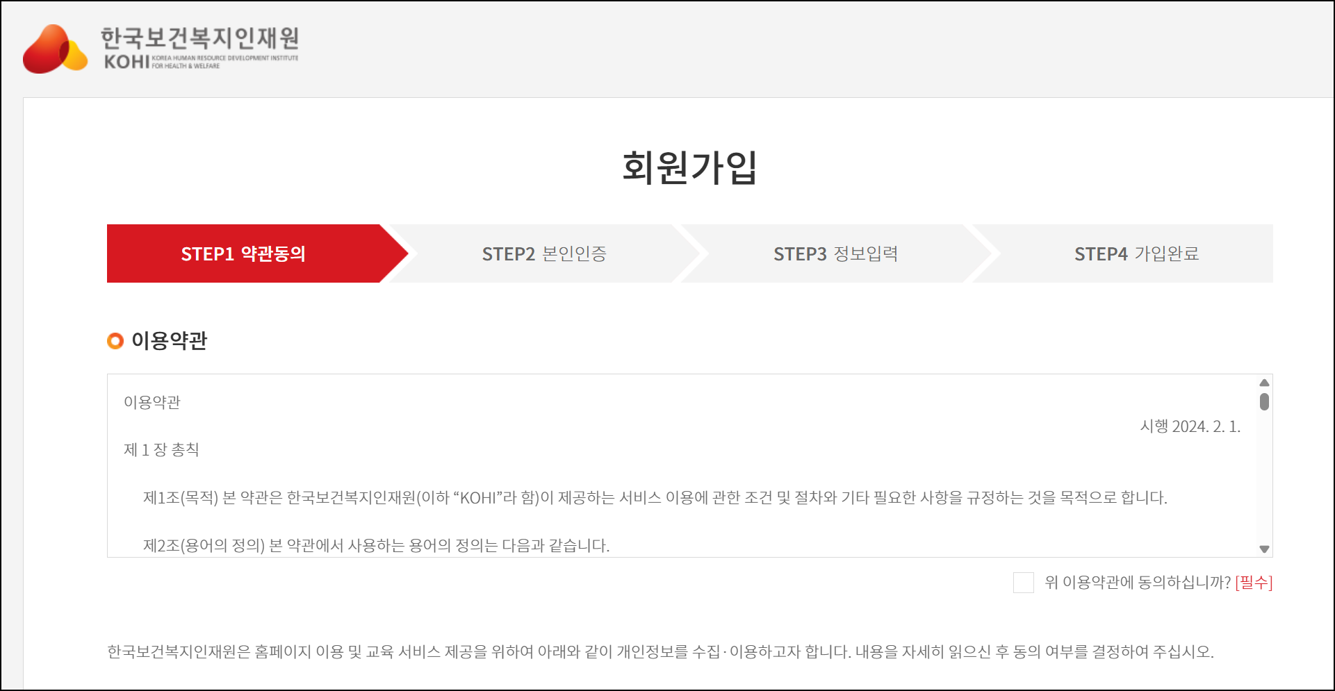 처음 KOHI 사이버교육센터를 이용하는 분들은 먼저 회원가입을 진행해야 합니다. 회원가입 자체는 어렵지 않지만 소속기관 정보를 정확히 입력하는 것이 중요합니다. 기관 정보가 잘못 입력되면 이수 실적이 해당 기관으로 연동되지 않을 수 있습니다.