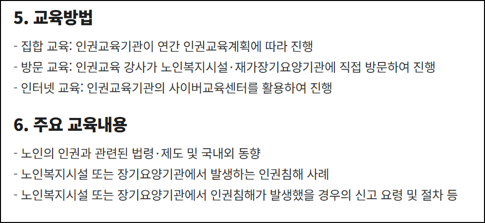 노인 인권교육 대상자 안내