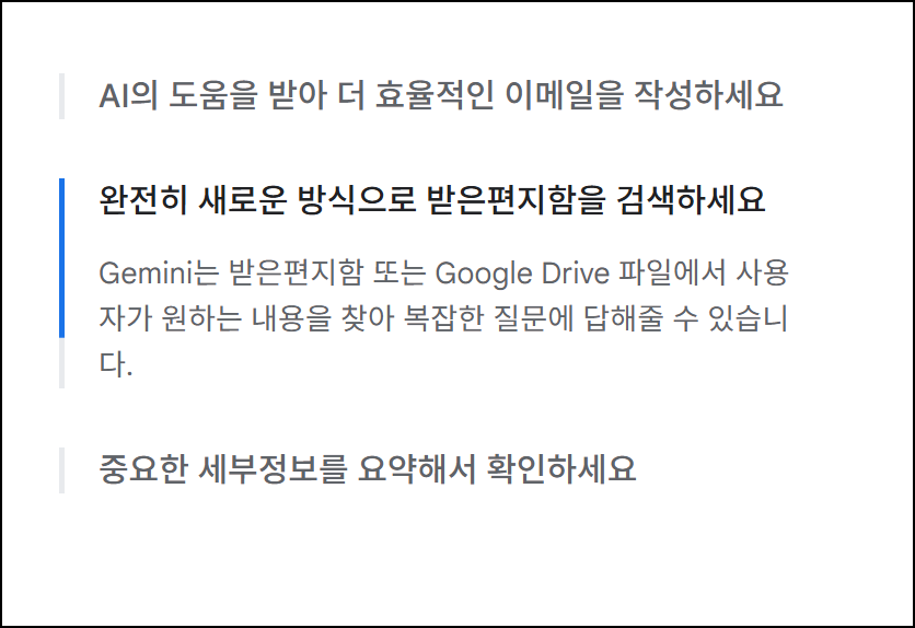 | 이메일 정리 | 라벨(Label) | 폴더 개념 대신 라벨을 활용하여 메일 분류 및 관리 |