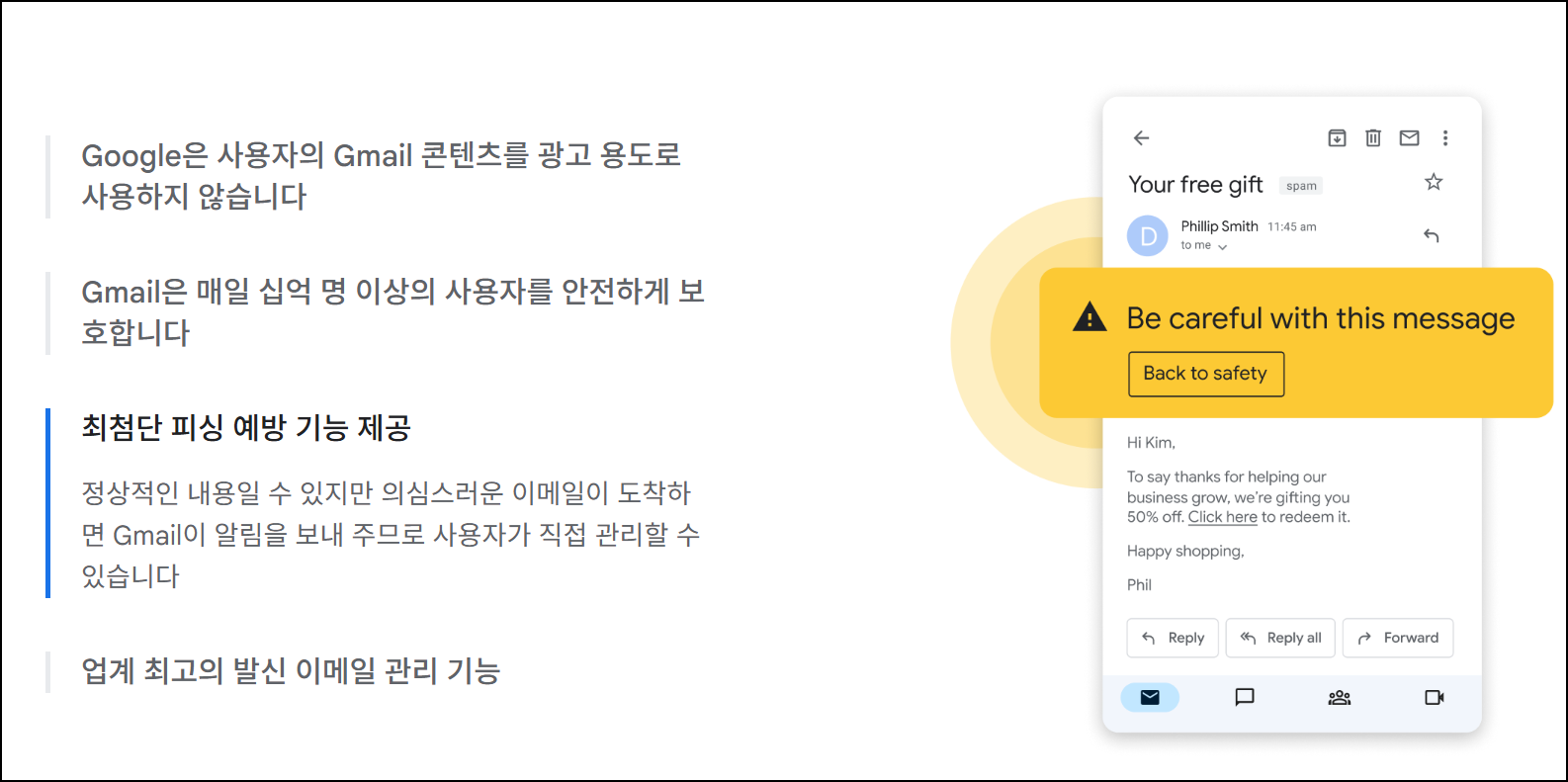 | 스팸 관리 | 스팸 차단 | AI 기반 스팸 필터링으로 불필요한 메일 자동 차단 |