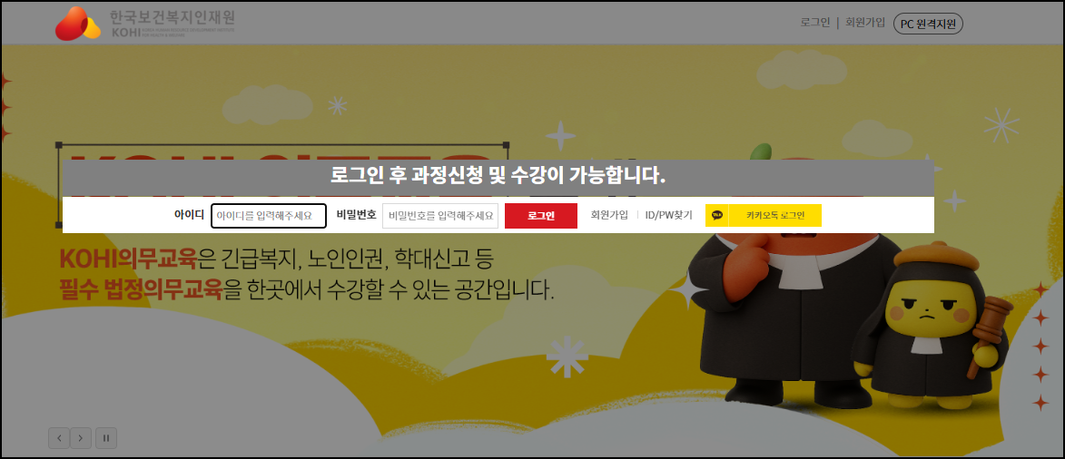 - edu.kohi.or.kr 또는 in.kohi.or.kr 접속