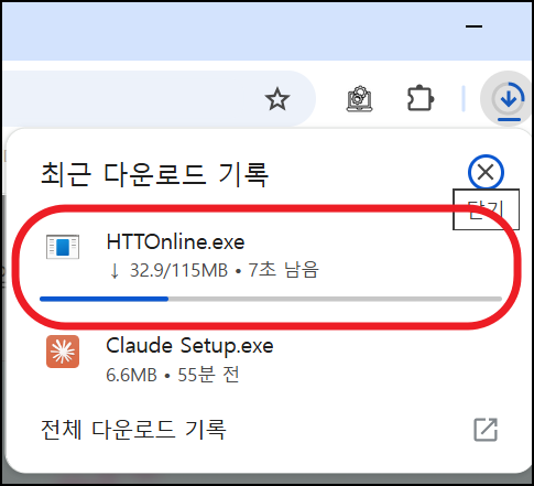 5. 설치 파일(HTTOnline.exe) 다운로드 시작
