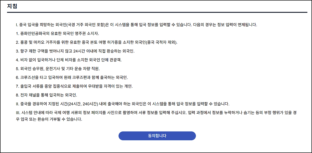 중국 입국 신고서 작성 대상 및 면제 대상 확인
